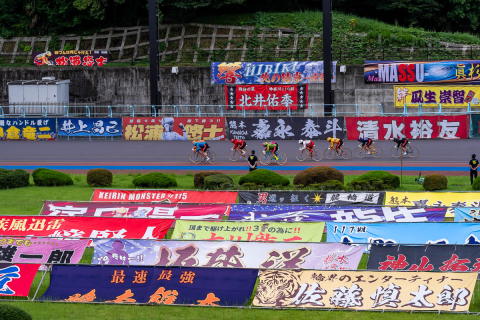 バンク内側と、客席がないバンクの外周に横断幕が張られ、選手達を静かに鼓舞する