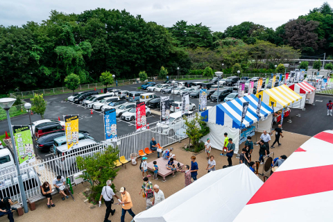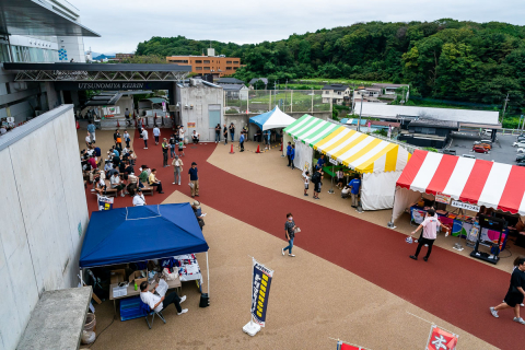 レーススタート前になると、スタンドへと人が移動するため、裏手の広場の人はまばらに