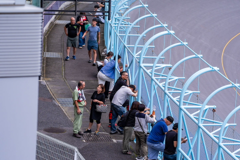 メインスタンド東端の一般観戦広場。レース前になると人が柵の前へと詰めかける