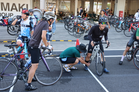 チームタイムトライアルのスタートを待つ参加者たち