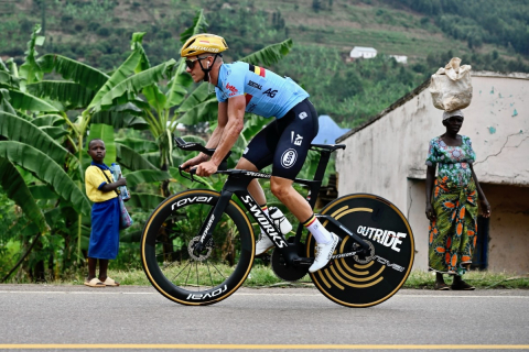 ルワンダの首都キガリを試走するレムコ・エヴェネプール(ベルギー)