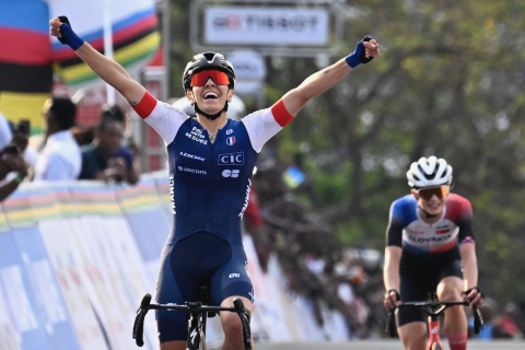 画像 ロード世界選手権2025 女子U23ロードレース表彰台:2位ヴィクトリア・クラドノヴァ(スロバキア)、1位セリア・ジェリー(フランス)、3位パウラ・ブラシ(スペイン) photo:UCI 2025/09/26 - 08:09
