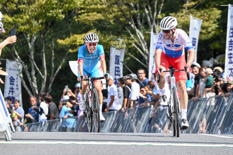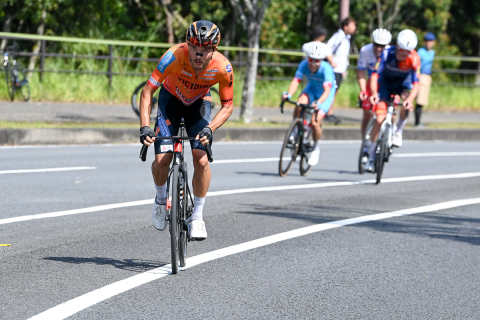 レース終盤、フォン・チュン・カイ(宇都宮ブリッツェン)がメイン集団から飛び出すが…