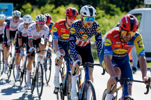 逃げ吸収後にプロトンを飛び出したクイン・シモンズ(アメリカ、リドル・トレック)