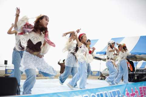 会場ではビーチライフin九十九里町のステージライブも。ダンスも行われて終始賑やか