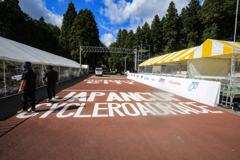 1996年のジャパンカップがUCIワールドカップの1戦になったことを記念する路面プレート