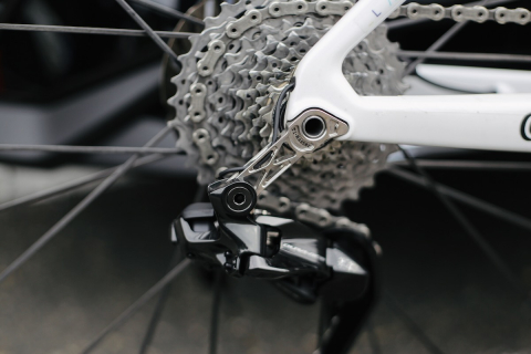 Tiparts.cc社のチタン製ディレイラーハンガーを使用。マルティネスのメインバイクだけのスペシャルだ