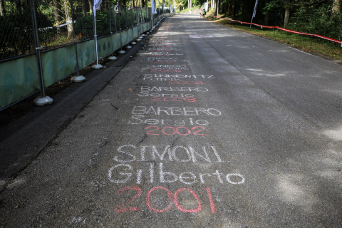 過去のジャパンカップの歴代優勝者名がチョークペイントでずらりと描かれていました