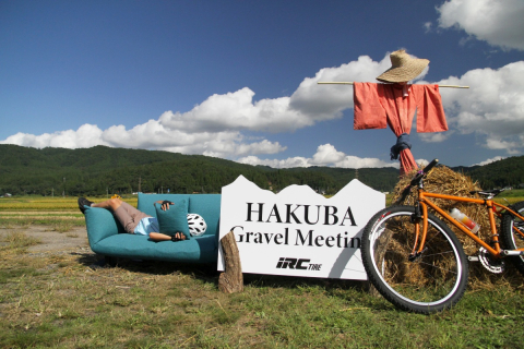 白馬の美しい景色の中にグラベルソファが出現する。ここで写真を撮るのはお約束