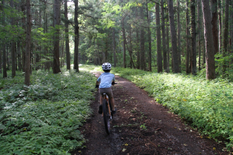 手に入れたばかりの26インチMTBにご満悦の息子。パパは無事走ってくれるか心配だ