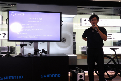 画像 CUESとQ'AUTOの開発に携わった宣伝企画部の枝村拓哉さんと開発者の島津速人さんの2人がトーク形式でプレゼンテーションを行った photo:Michinari TAKAGI 2025/10/16 - 12:42
