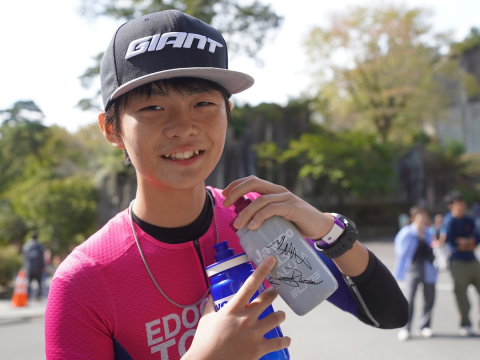 熱心なファンはあからじめペンを持参済み。ハンドルバーに直筆サイン!