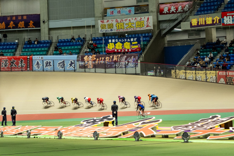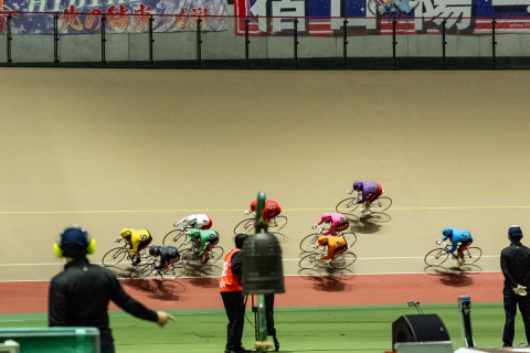 4コーナーから先頭に立った嘉永泰斗(熊本)が、勢いそのままに最後の直線へと向かう。後ろでは恩田淳平(群馬)と古性優作(大阪)が張り合う