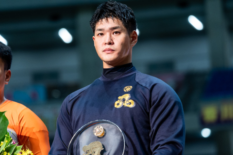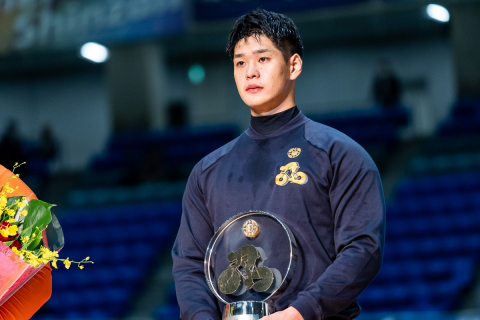 スポットライトを浴びながら嘉永泰斗(熊本)が表彰式から去る