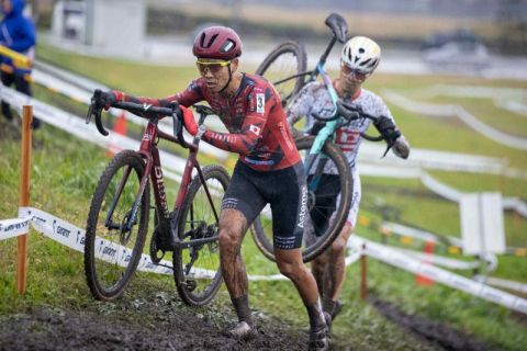 画像 WE1で独走を続ける石田唯(TRKWorks)の後方にはジュニアでトップの小林碧(AX cyclocross team)が迫る photo:Michinari TAKAGI 2025/10/27 - 11:48