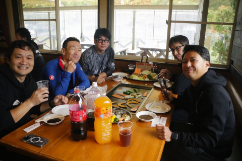 ライド終わりは少し雨も小降りに。晴れたのはお昼を食べ終わった後でした(あるある)