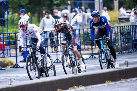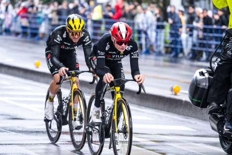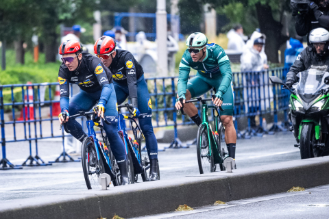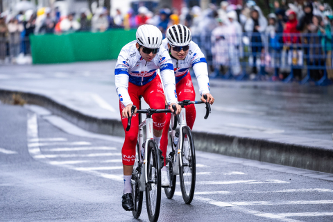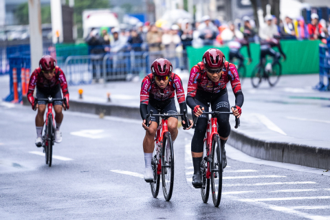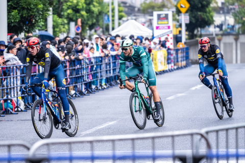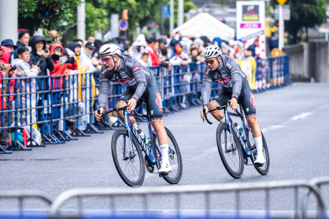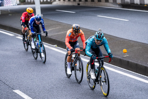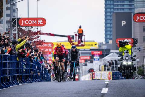 画像 ヨナス・アブラハムセン(ノルウェー、ウノエックス・モビリティ)のアタックに追従した花田聖誠と小野寺玲(Astemo宇都宮ブリッツェン) photo: Yuichiro Hosoda 2025/11/09 - 19:15