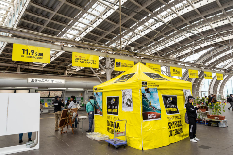 手描きのウェルカムボードが出迎えていた、さいたま新都心駅のコンコース