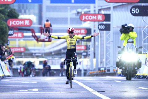 落車しながらも独走を決めたヨナス・ヴィンゲゴー(デンマーク、ヴィスマ・リースアバイク)