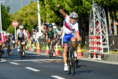 市民レース100kmオープンを制した左迫間昭一(チームGINRIN熊本)