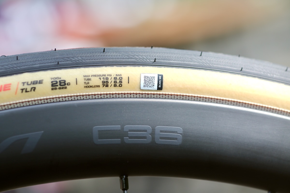 タイヤにはQRコードがプリントされ、ヴィットリアの製品紹介ページにアクセスできる