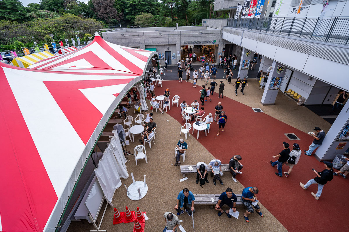 レーススタート前になると、スタンドへと人が移動するため、裏手の広場の人はまばらに