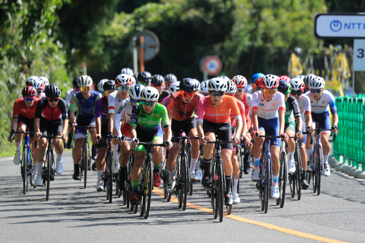 トップの佐藤光(TeamCyclersSNEL)をメイン集団がラスト1周に向かう