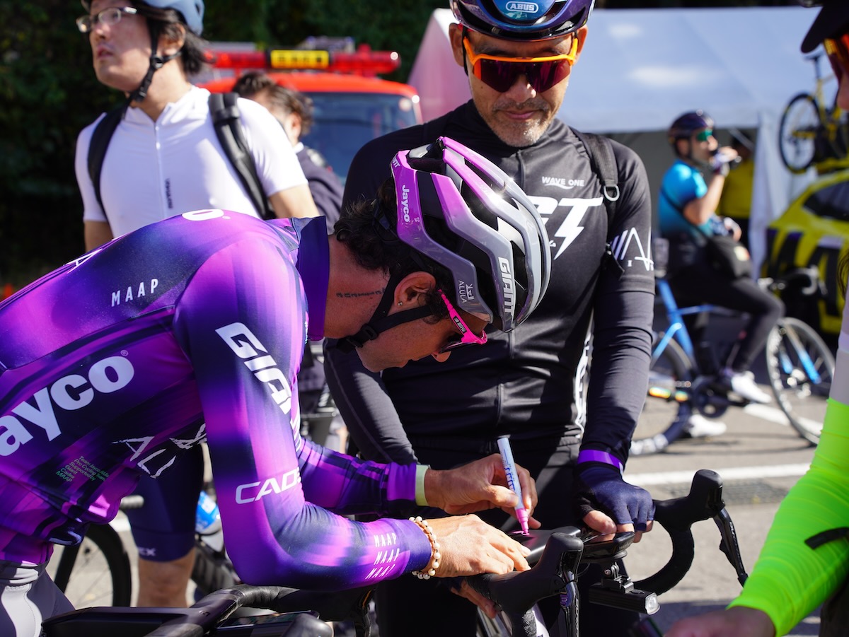 熱心なファンはあからじめペンを持参済み。ハンドルバーに直筆サイン!