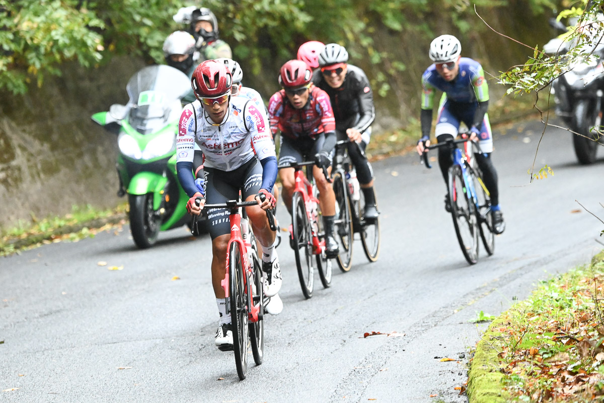台湾チャンピオンのフォン・チュンカイ(宇都宮ブリッツェン)が先行する場面も
