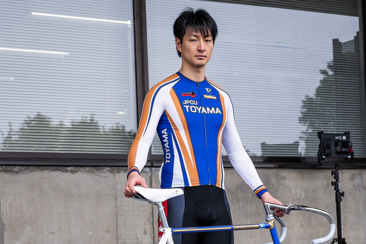 フレームと同じ北陸新幹線パターンのジャージを着て取材に応じてくださった近谷涼選手(富山)