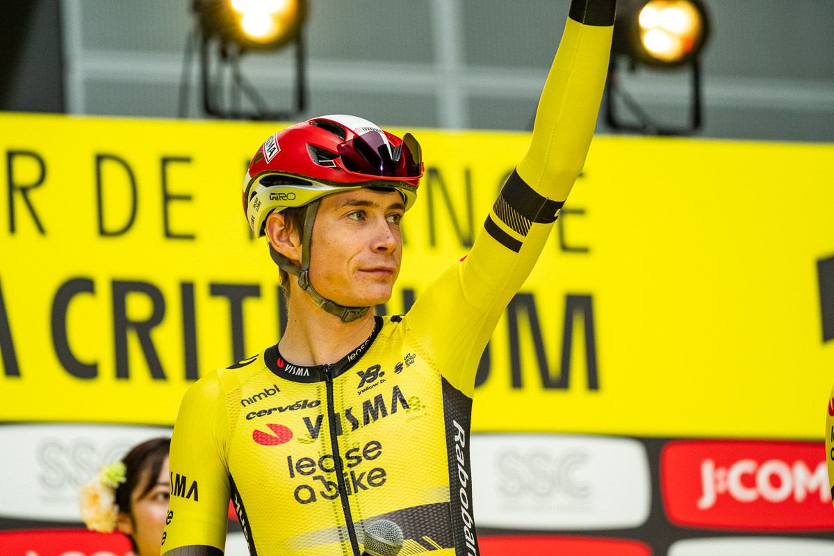 声援を受けながらステージに上がったヨナス・ヴィンゲゴー(デンマーク、ヴィスマ・リースアバイク)