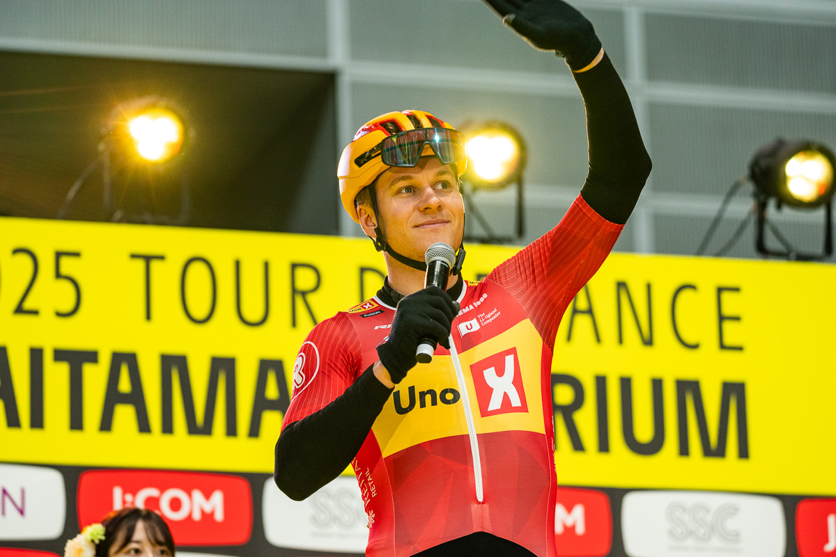 手を振って声援に応えるヨナス・アブラハムセン(ノルウェー、ウノエックス・モビリティ)