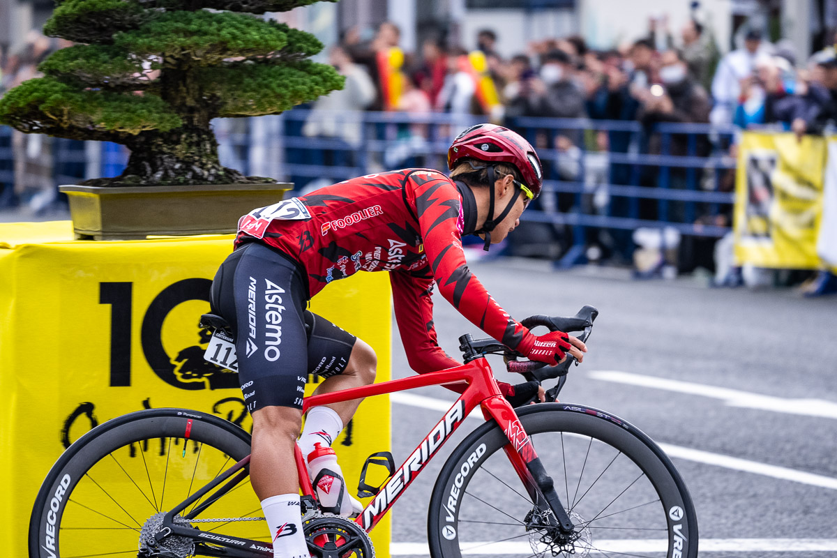アクチュアルスタート直後のコーナーを先頭で回る花田聖誠(Astemo宇都宮ブリッツェン)