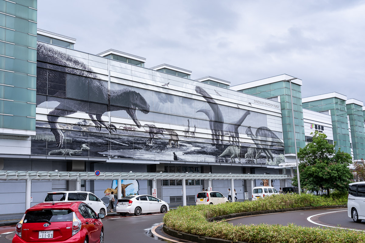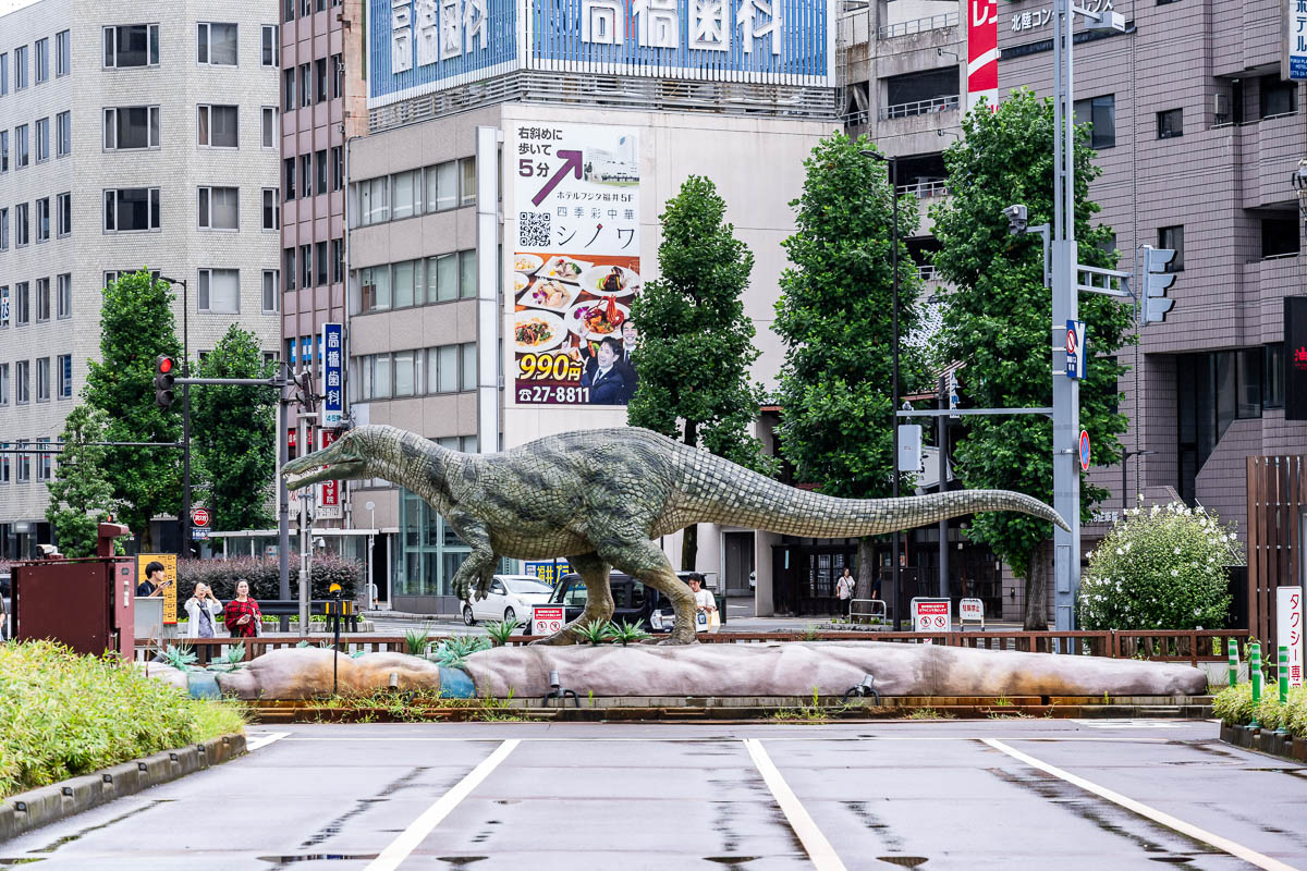 福井駅西口。壁面には大きな恐竜壁画が描かれている photo: Yuichiro Hosoda