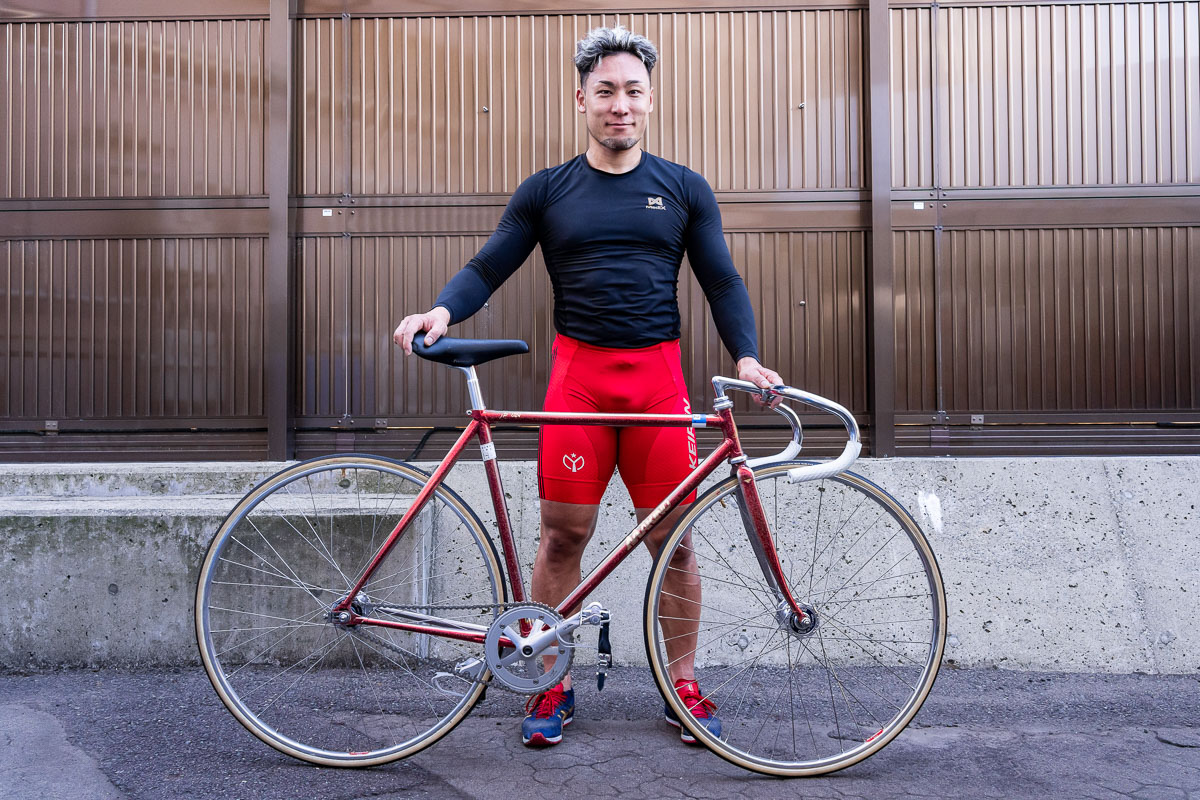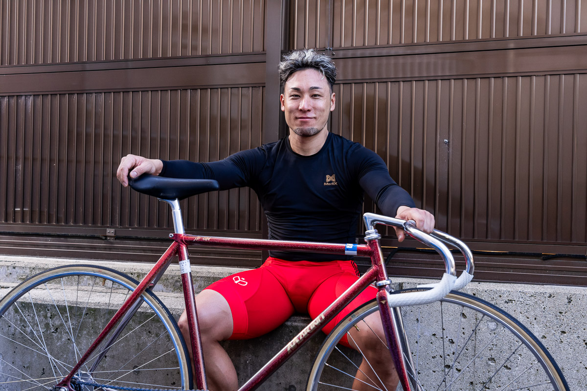 フレームのベースカラーは、プロになる前は青系統だったそうで、それはかつて競輪選手であった父・盛夫さん(元50期、神奈川)のカラーリングの影響もあって、と言う。最初に赤系のフレームを作った時は「自分のオリジナリティとして赤のフレームに乗ってみたい」と言う想いがあり、盛夫さんの色違い的な存在として、こうしたと言う。