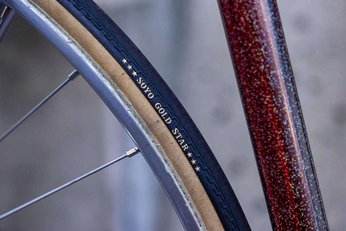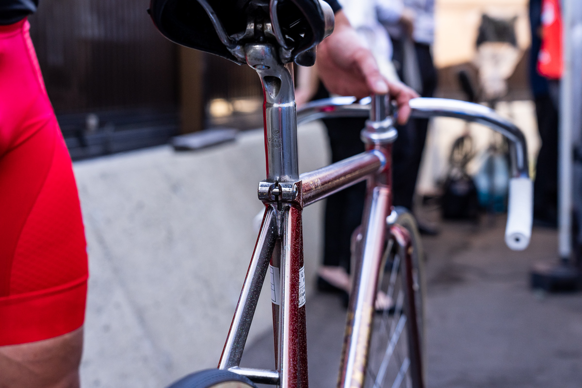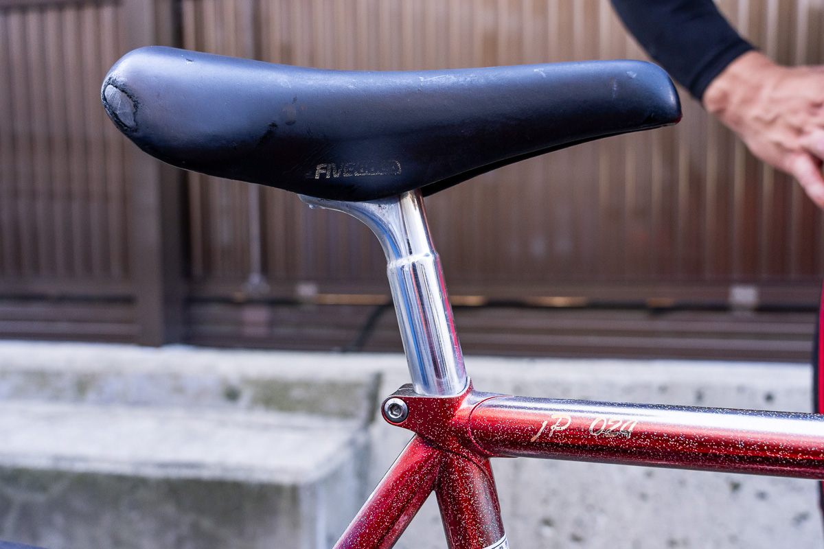 サドルは年季が入ったカシマックスのファイブゴールド。「僕は新品のサドルの感覚があまり得意ではなくて、自分のお尻とか脚の形に馴染んだサドルが良くて。もうこのサドルは完全にその形状になっていて、正直なかなか変えられない、というのが現状ですね」