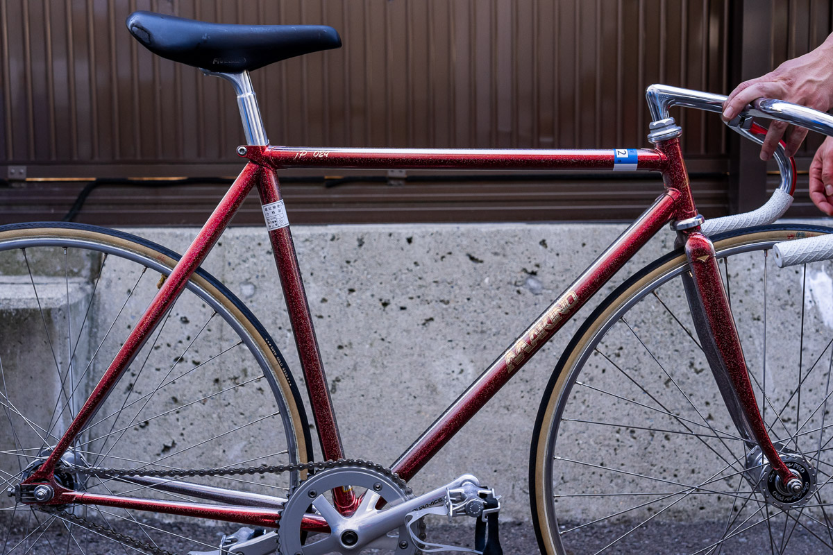 郡司選手によると、元々はマキノ製のフレームを長年使っており、ブリヂストンも定期的に作って乗ってみたりと、何台も制作した上で試しながら、と言うのが現実のようだ。