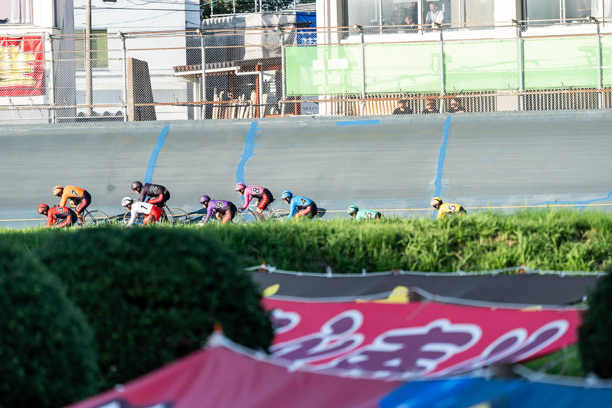 1周目を走るうちに近畿の三谷、小森、南が上昇。南が古性の後ろを伺ううちに、さらに外から寺崎が上がり、2周目1センター過ぎには古性が寺崎を前に、南を後ろへと迎え入れた。これにより寺崎、古性、南、三谷、小森の近畿ラインが完成。その後ろに太田、野田、深谷、嘉永の単騎勢が着いた。