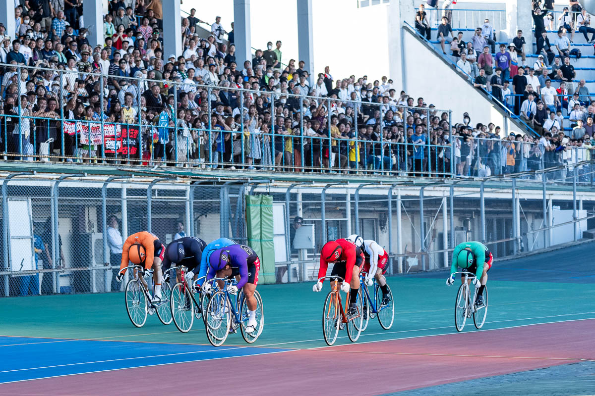 雨が降ったり止んだりを繰り返して高湿度だった前日の空模様を経て、快晴となった決勝開催日の福井。スタンドには場内のファンが集結し、決勝となる第11レースのスタートを待った。地元県勢は脇本雄太(福井)が準決勝で敗れるも、先日オールスター競輪でGI初制覇を決めた寺崎浩平(福井)に加え、小森貴大(福井)が勝ち上がり3番車と6番車に。