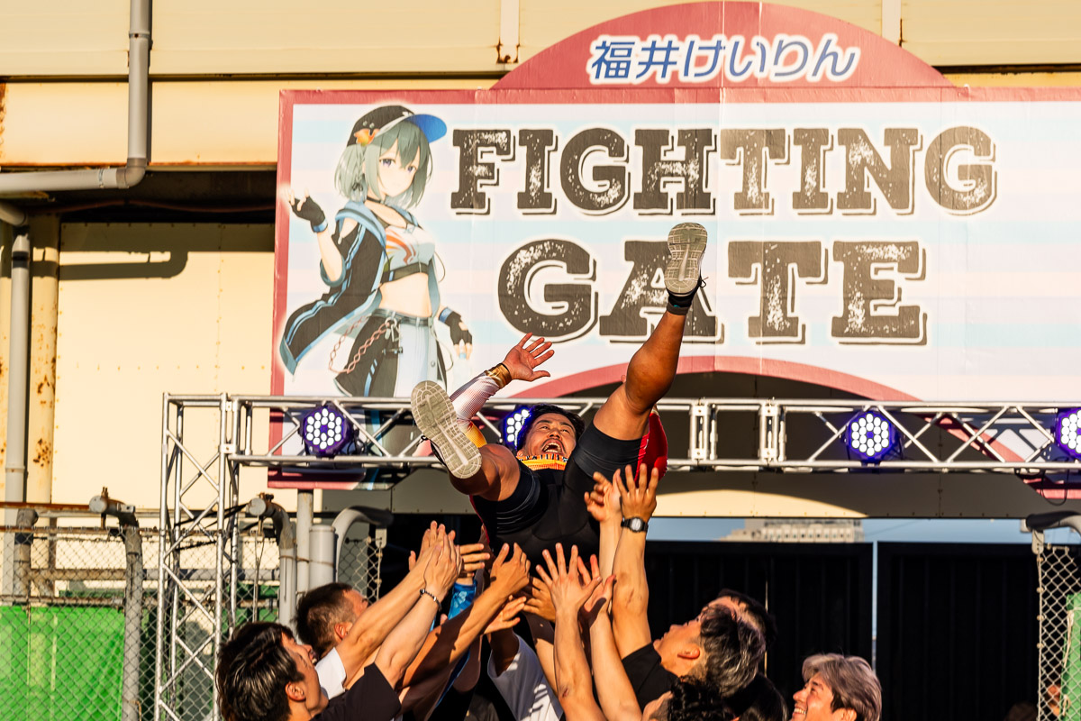 ガッツポーズをしながら敢闘門へと向かう南修二(大阪) photo: Yuichiro Hosoda