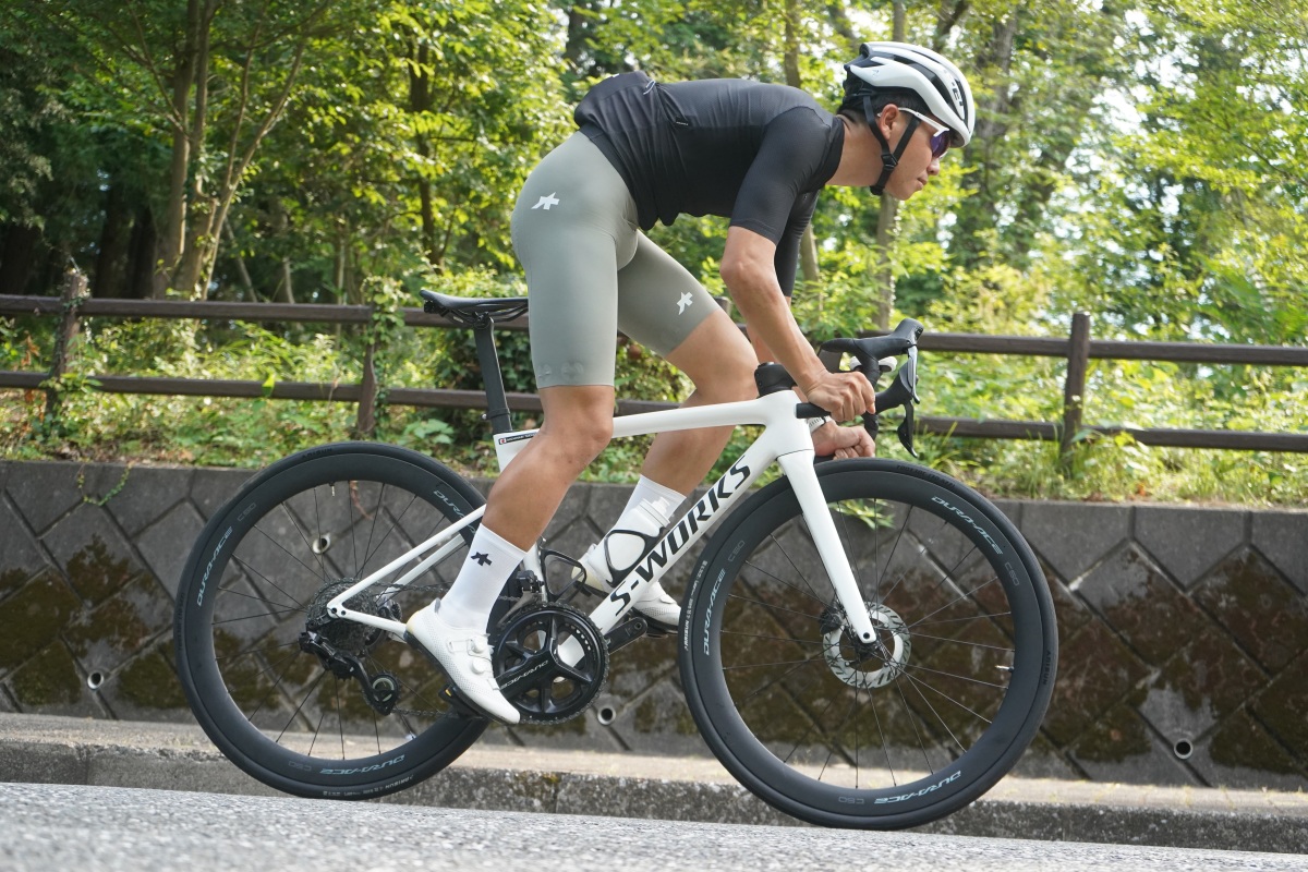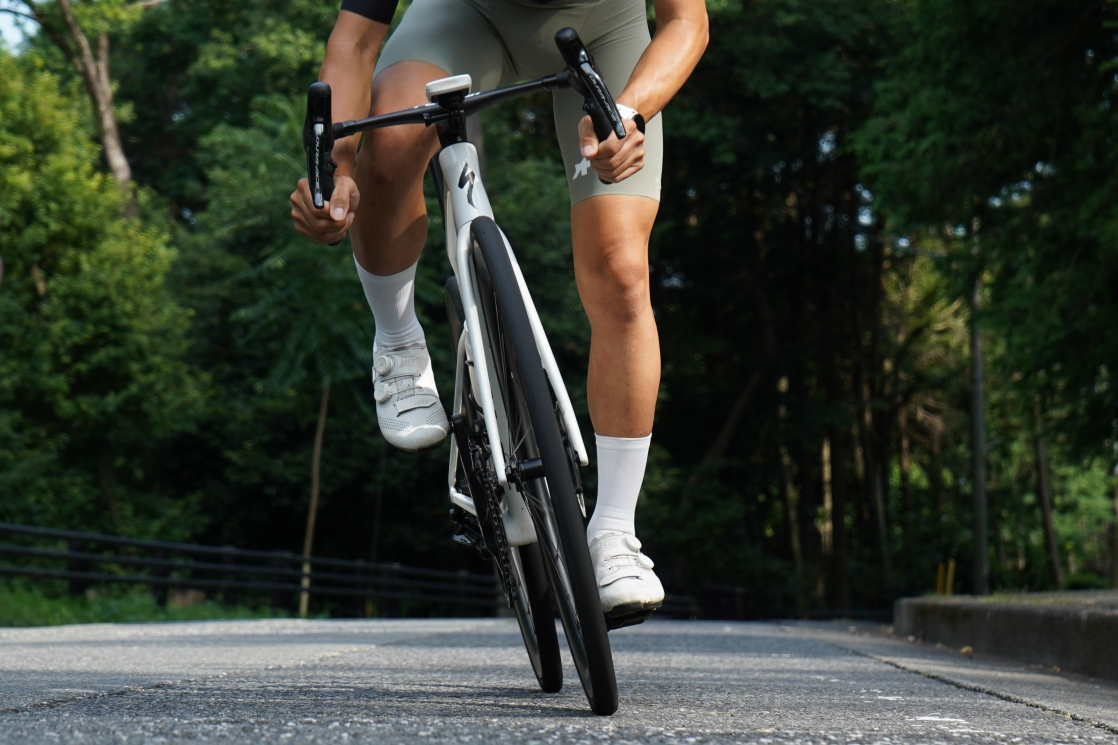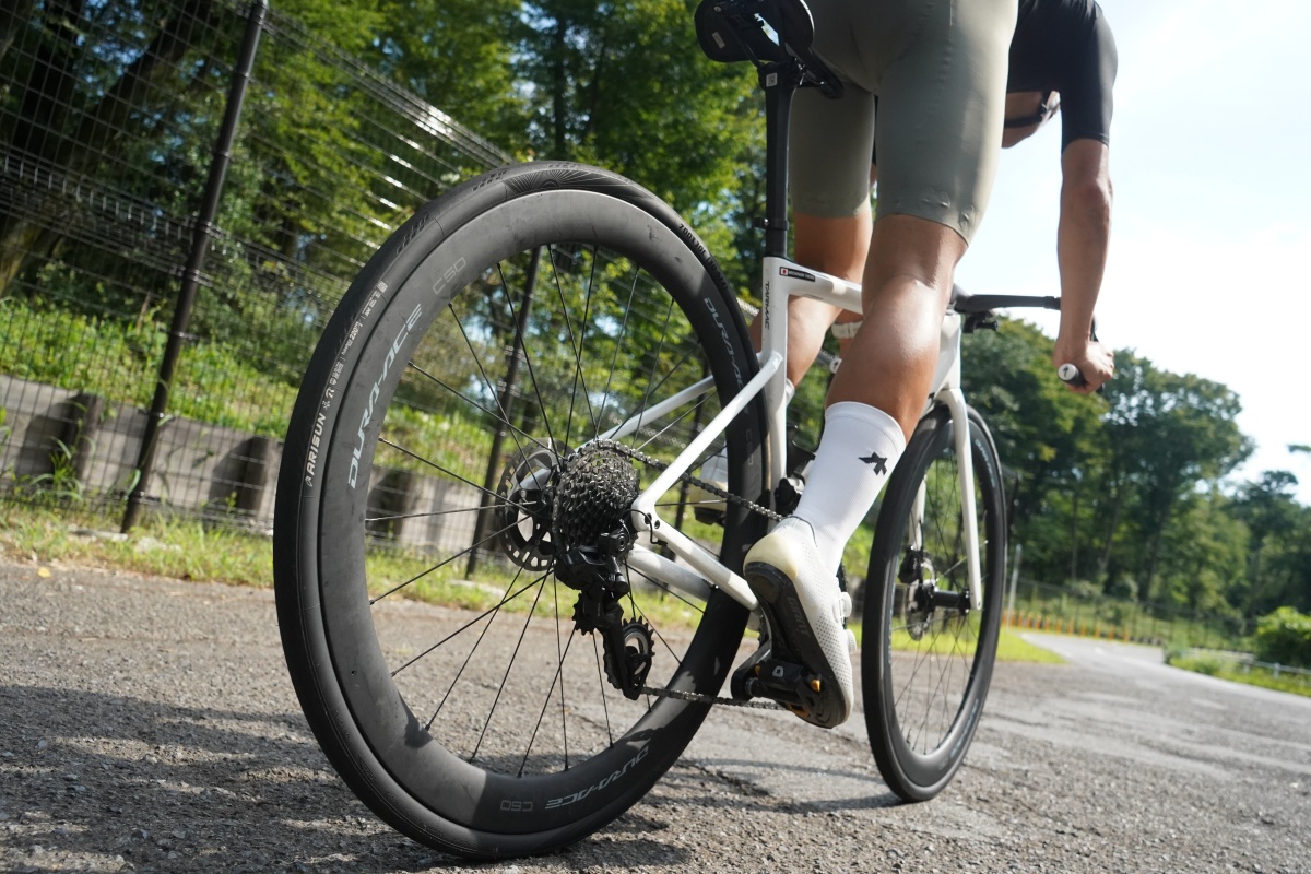 ヒルクライムシーンでは、緩斜面でもスピードを維持しやすく、ペースを刻みやすい。激坂でもリアにトラクションを掛けながらパワフルに駆け上がれるため、勾配の変化による失速も最小限に留めることができる。転がりの軽さは左右の振りの軽さにも繋がっており、ダンシングもリズミカルに刻みやすい。