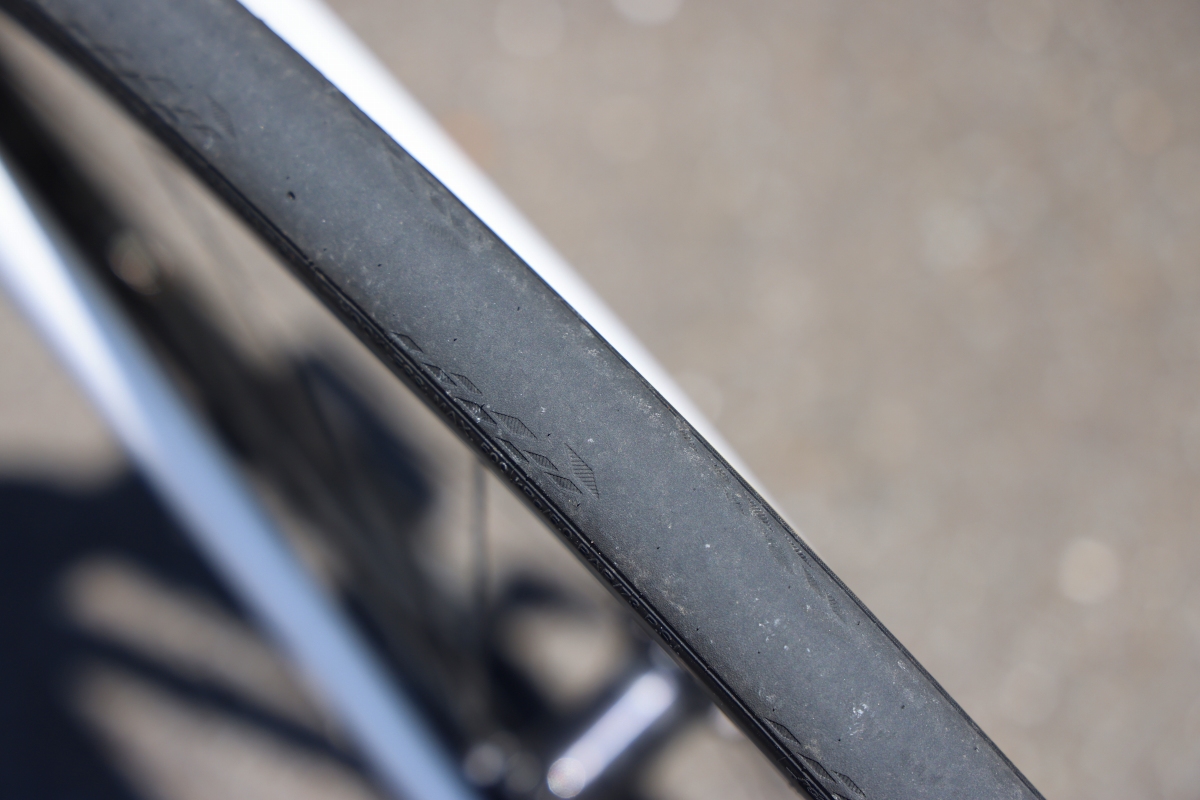 テストライドでは様々な空気圧を試してみたが、28Cでは4.5bar、30Cでは4.2barが体重60kgの私にとって丁度よい空気圧だった。因みに、これ以上低圧にしてしまうとサイドウォールの腰砕け感があり、バイクコントロールにも影響が出る。