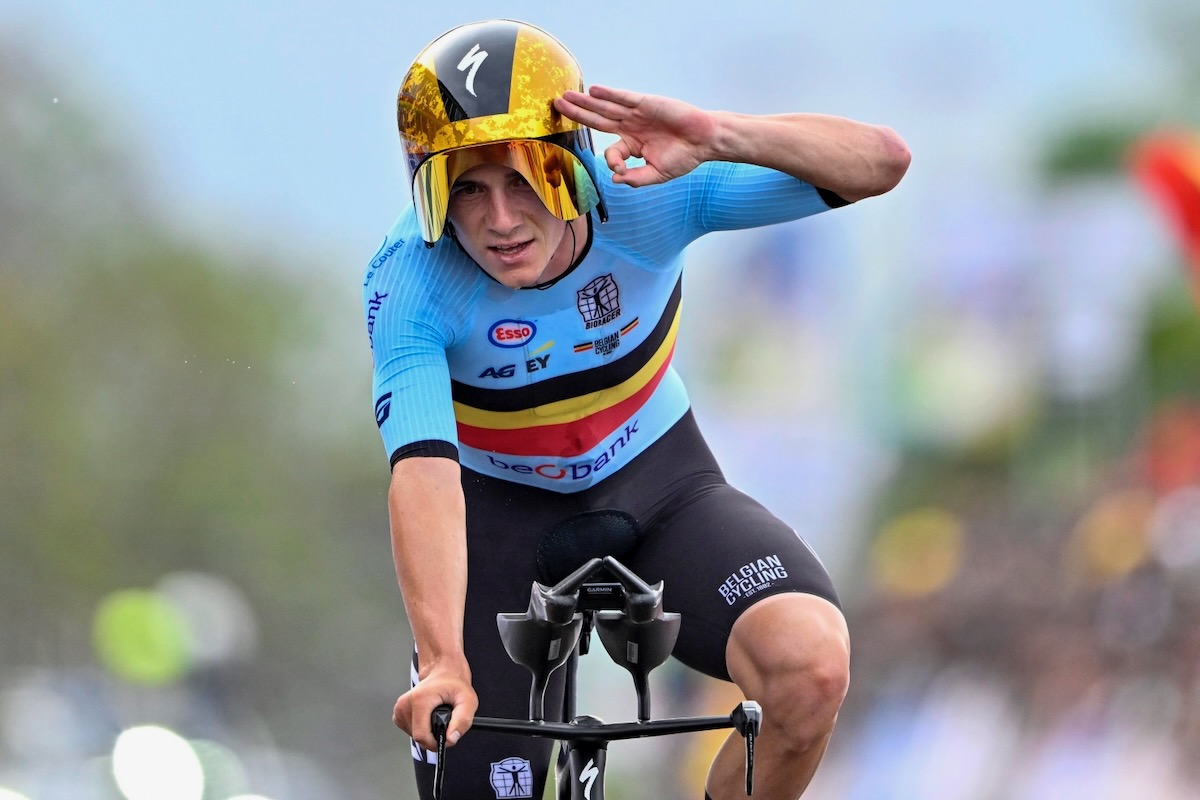 終盤に石畳の急坂が登場したロード世界選手権個人タイムトライアルの男子エリート。レムコ・エヴェネプール(ベルギー)が序盤から飛ばし、史上3人目となる3連覇を決めた。エヴェネプールに終盤追い抜かれたポガチャルは4位と表彰台に届かなかった。