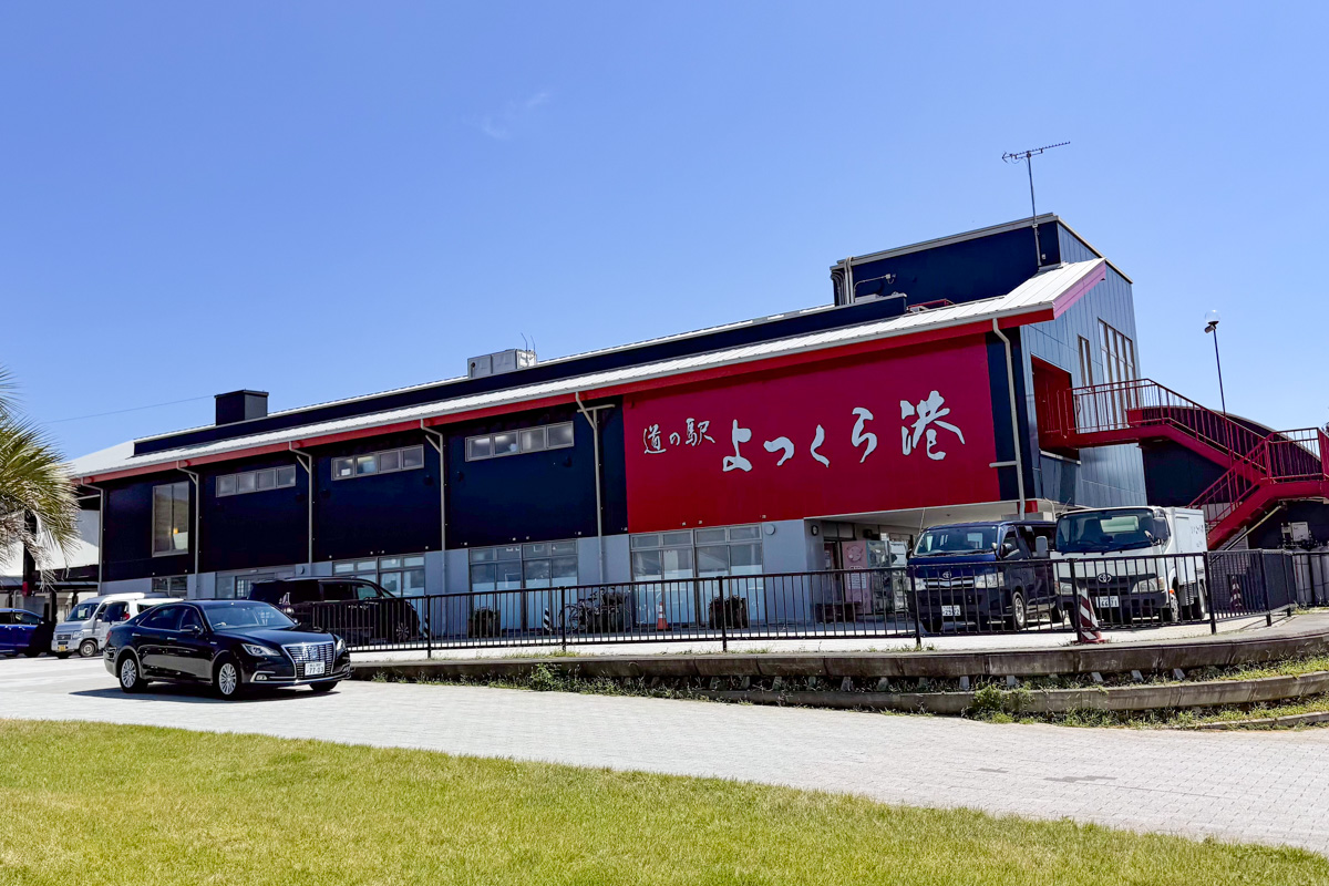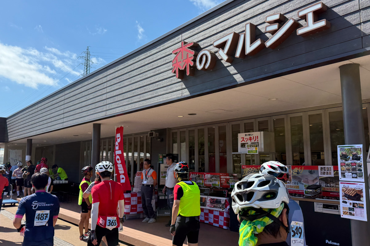 シーサイドのサイクリングロードの先の49km地点には「道の駅よつくら港」エイドがあった。ここでは小名浜名産の煎餅「たこせん・かつおせん」、チーズ入りの和菓子がいただけた。