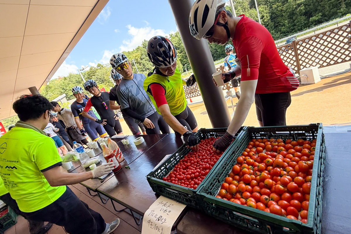 長かった山を抜けて平坦に出たら、トマトのテーマパーク「ワンダーファーム」エイドに到着。トマト農園が観光客用に公開してくれている公園で、トマト狩りやBBQ、キャンプ、ドッグランなどアトラクションも色々楽しめるようだ。ちなみに「トマトの聖地」と呼ばれているらしい。