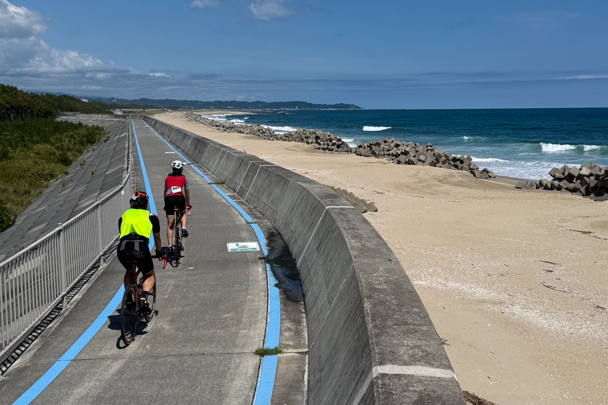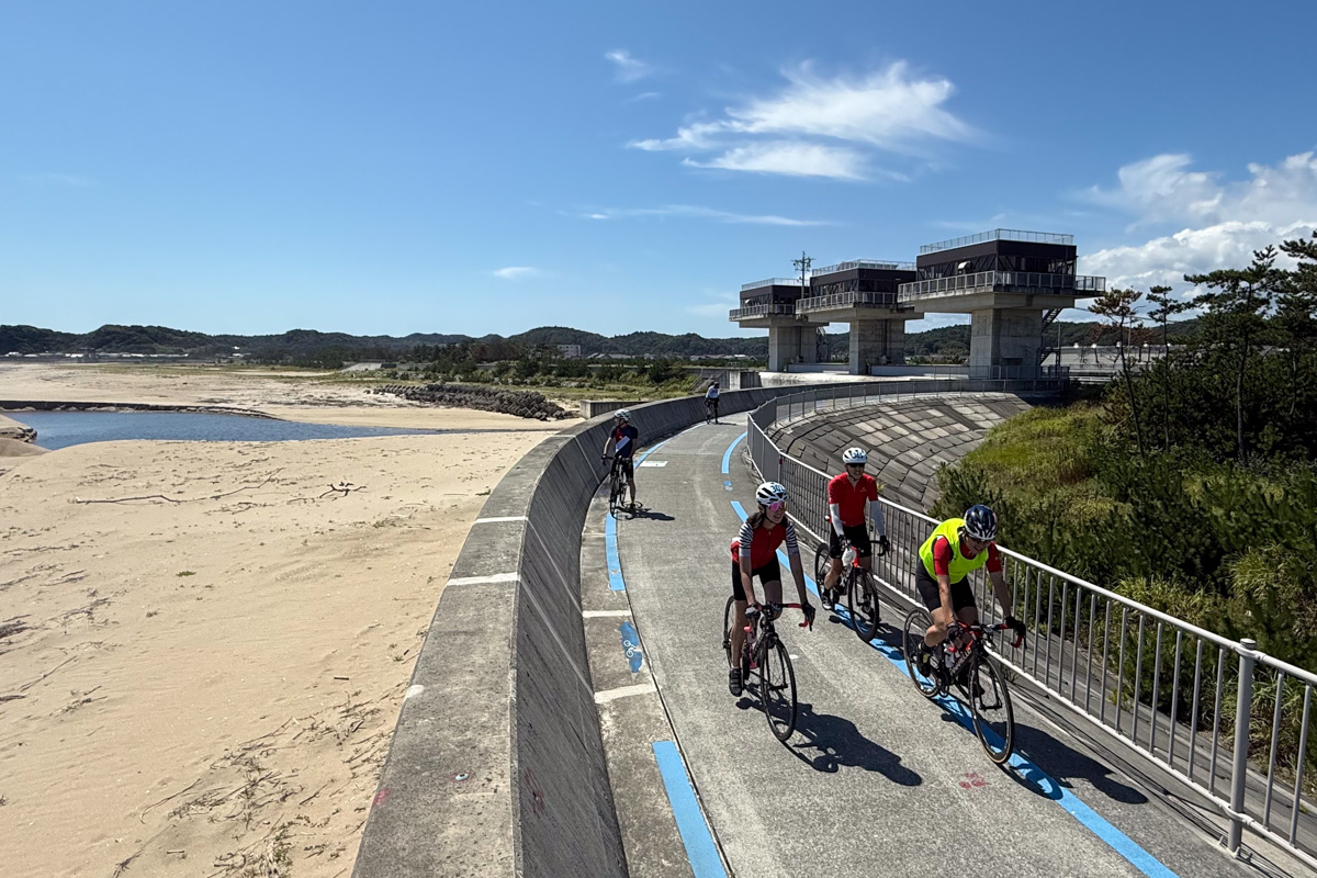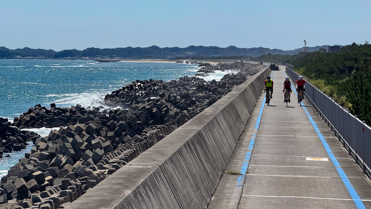 お昼をいただいて再出発すると、すぐに海沿いのサイクリングロードへと入る。自転車のための贅沢なシーサイドロードが延々と続いている! 天気がいいと、海を見ながら走る気持ち良さったらない。