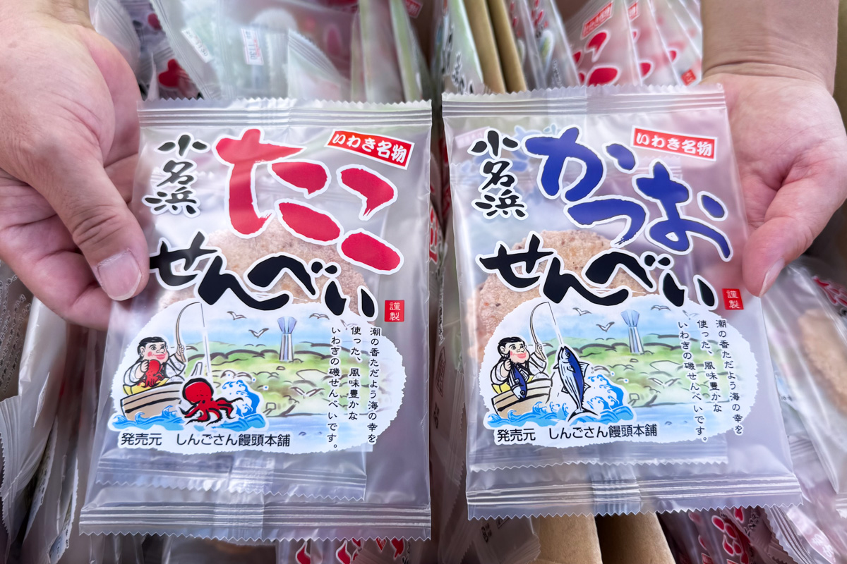 小名浜名産の煎餅「たこせんべい」「かつおせんべい」