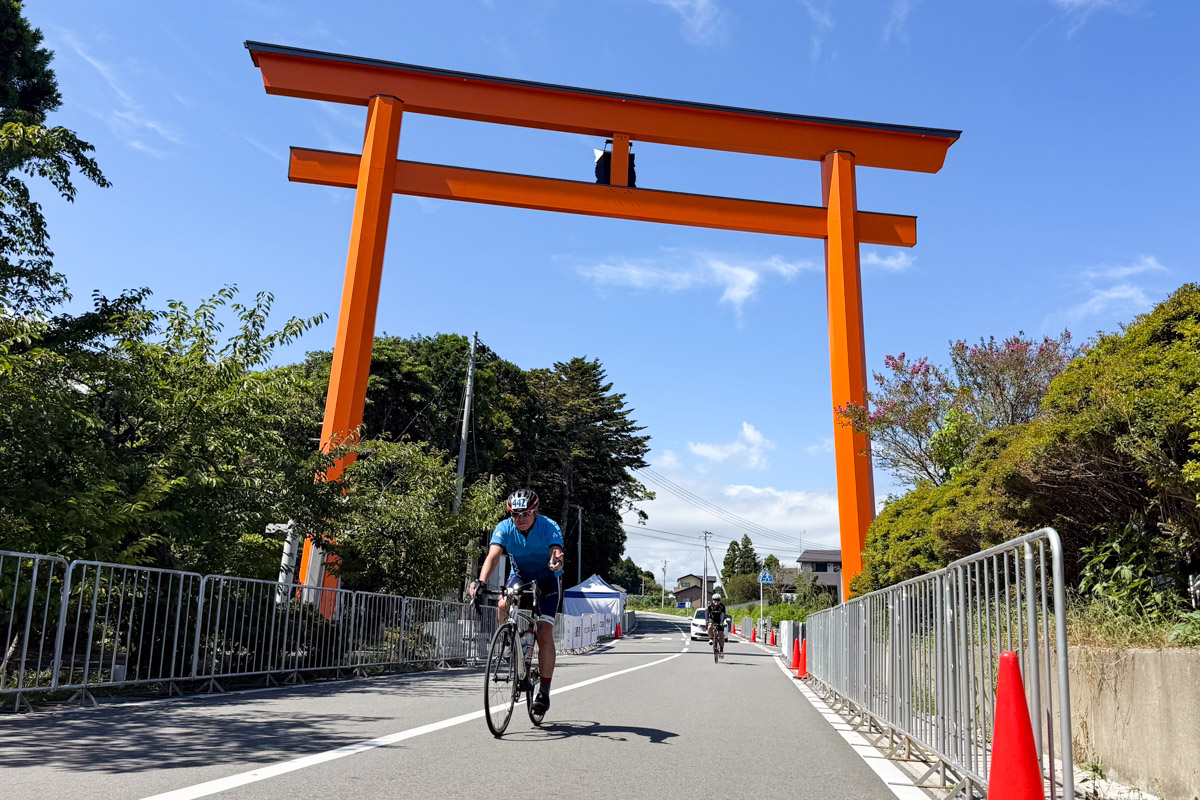 フィニッシュでは北田天満宮の大鳥居が出迎えてくれる photo:Makoto AYANO