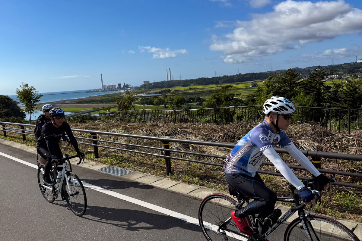 ふたたび浜街道に合流したら、残りは10km少々。原発事故当時に復興の最前線基地となったサッカーの聖地「Jヴィレッジ」前を通過して、一直線に開けた浜街道を駆け下る。