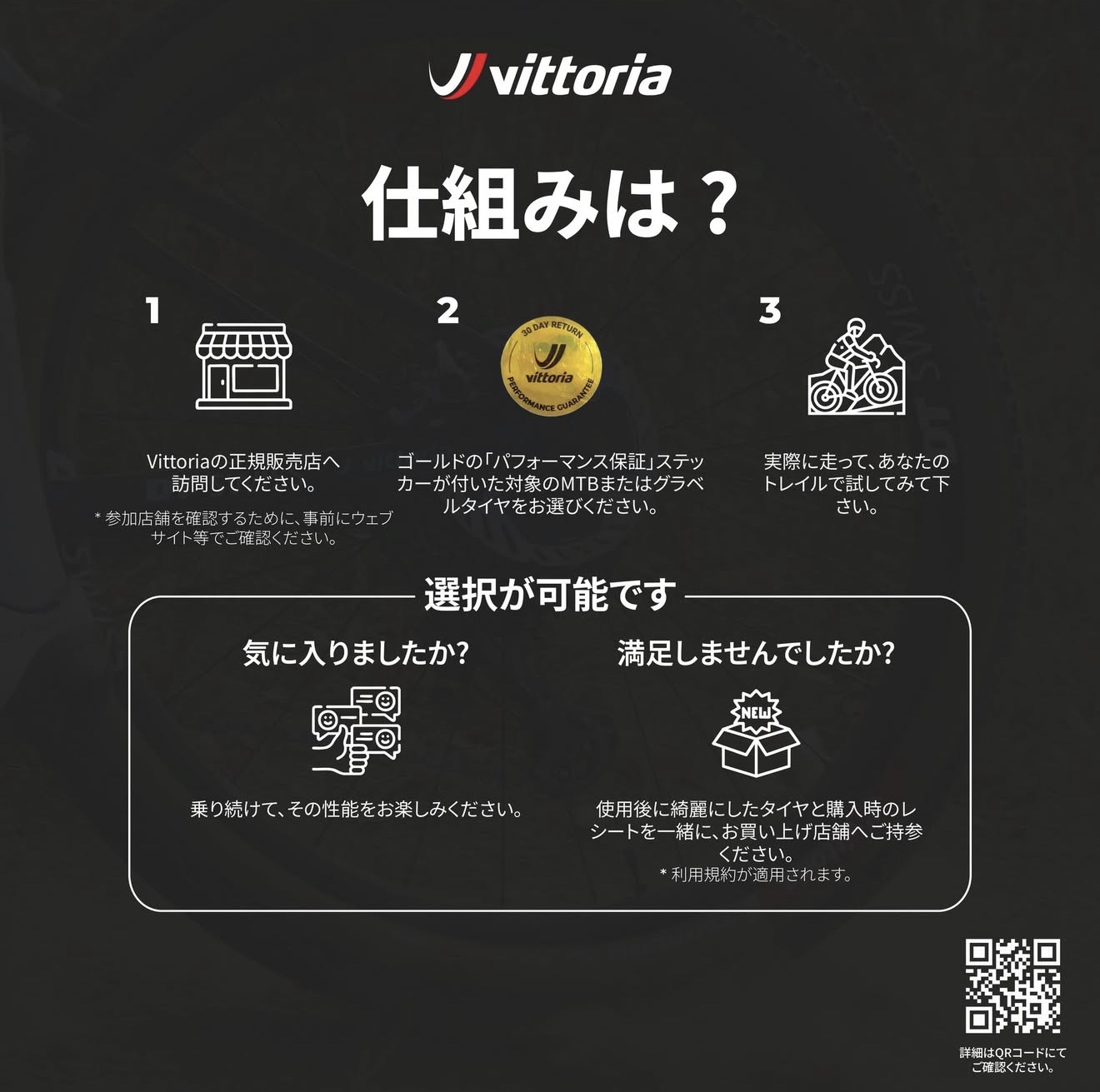 MTB やグラベル用のタイヤ選びは難しいもの。だからこそヴィットリアは対象タイヤに「30日間パフォーマンス保証」をご用意しました!